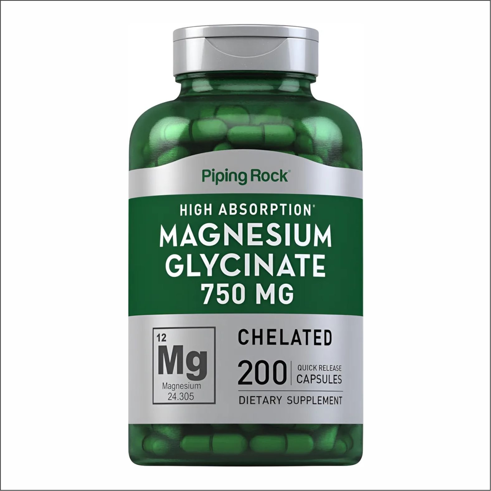 Piping Rock Glicinato Magnésio 750 Mg 200 Caps Alta Absorção Sem Sabor