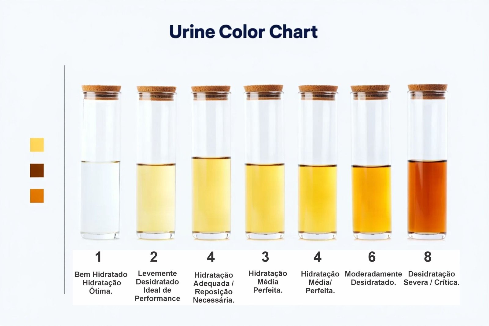 O Teste Cor Urina é a ferramenta diagnóstica mais rápida. Este cartão permite o monitoramento visual diário da hidratação, garantindo que a criança saiba exatamente quanto de água criança precisa beber.