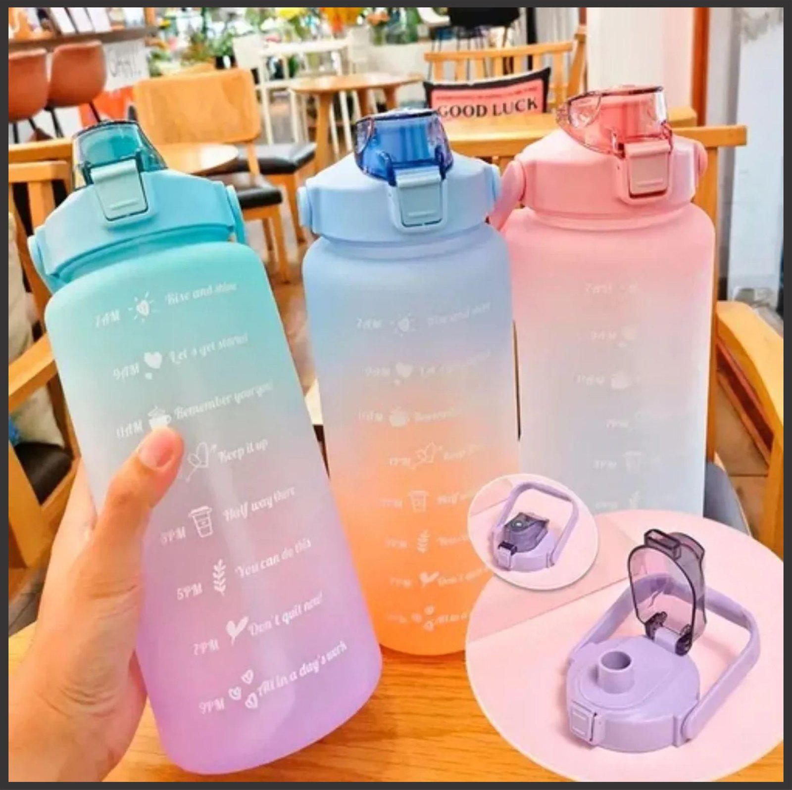 Super Kit de Hidratação! 🤩 Garrafas de Água Coloridas (3 tamanhos: Grande, Média e Pequena). Mantenha a hidratação em dia com estilo! Por R$67,93 ou 3x R$31,29. Escolha o seu! 🌈💧