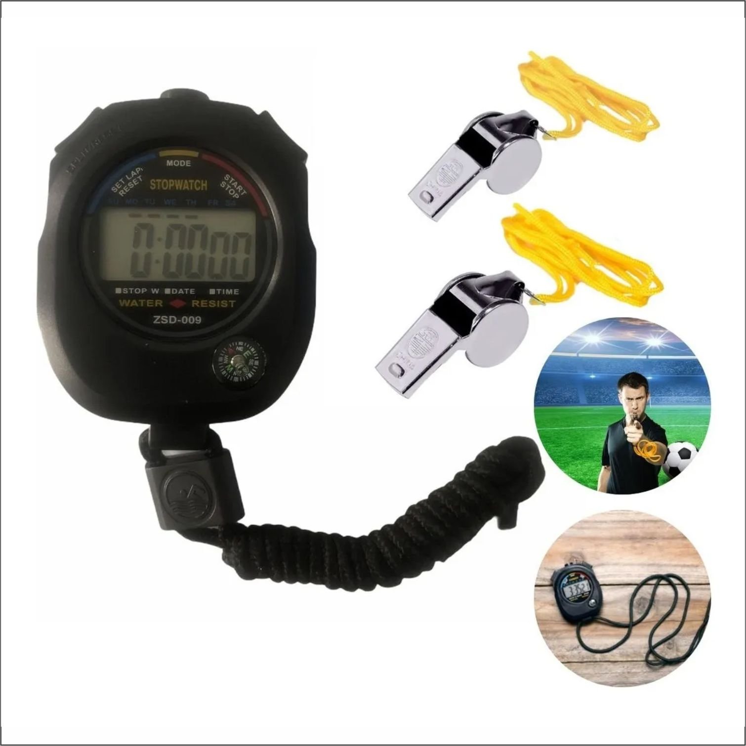 Cronometro Digital + 2 Apitos Metal Profissional Com Cordão